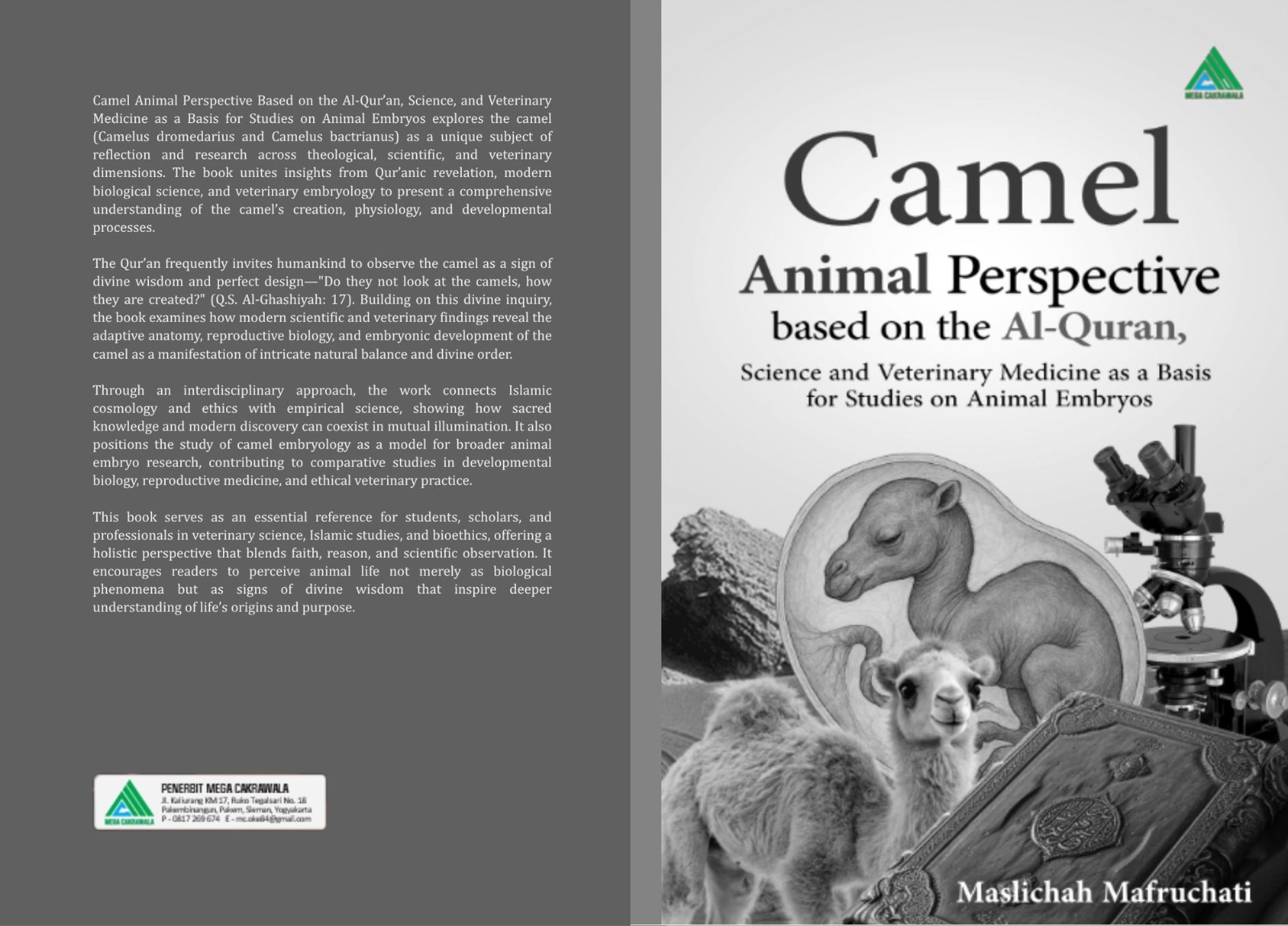 Camel Animal Perspective Based on the Al-Qur’an, Science, and Veterinary Medicine as a Basis for Studies on Animal Embryos explores the camel (Camelus dromedarius and Camelus bactrianus) as a unique subject of reflection and research across theological, scientific, and veterinary dimensions. The book unites insights from Qur’anic revelation, modern biological science, and veterinary embryology to present a comprehensive understanding of the camel’s creation, physiology, and developmental processes.